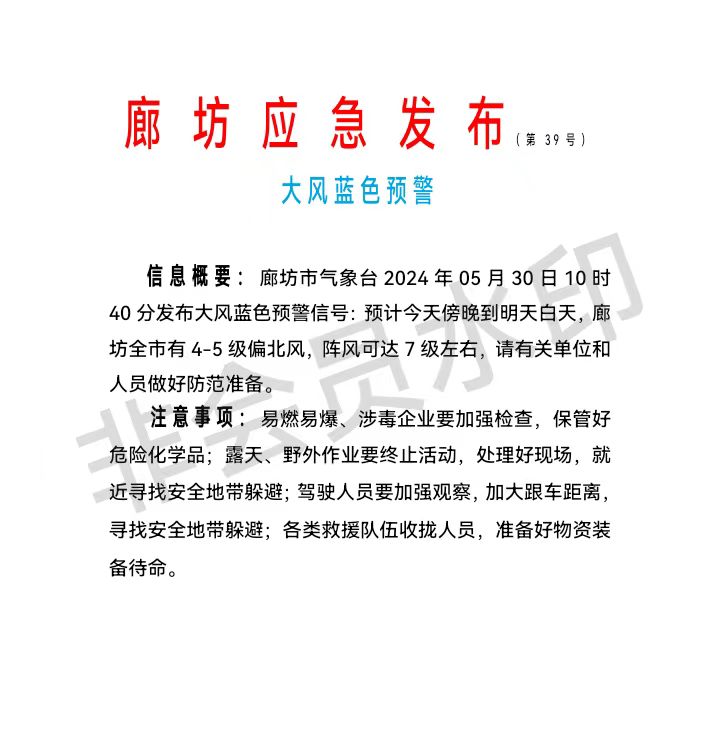 大风蓝色预警