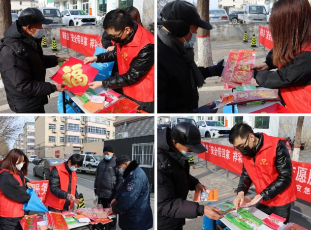 在馨领域小区、国税小区志愿者通过设置咨询服务台、摆放宣传展板、悬挂条幅等形式,向小区居民耐心讲解消防安全知识以及用气、用电等居家安全常识,使小区居民更深、更细地掌握安全知识,筑牢家庭安全防线,让小区居民安全出行,放心居家。同时也发放了春联、“福”字等实用宣传品,并为小区居民送上新年祝福。
